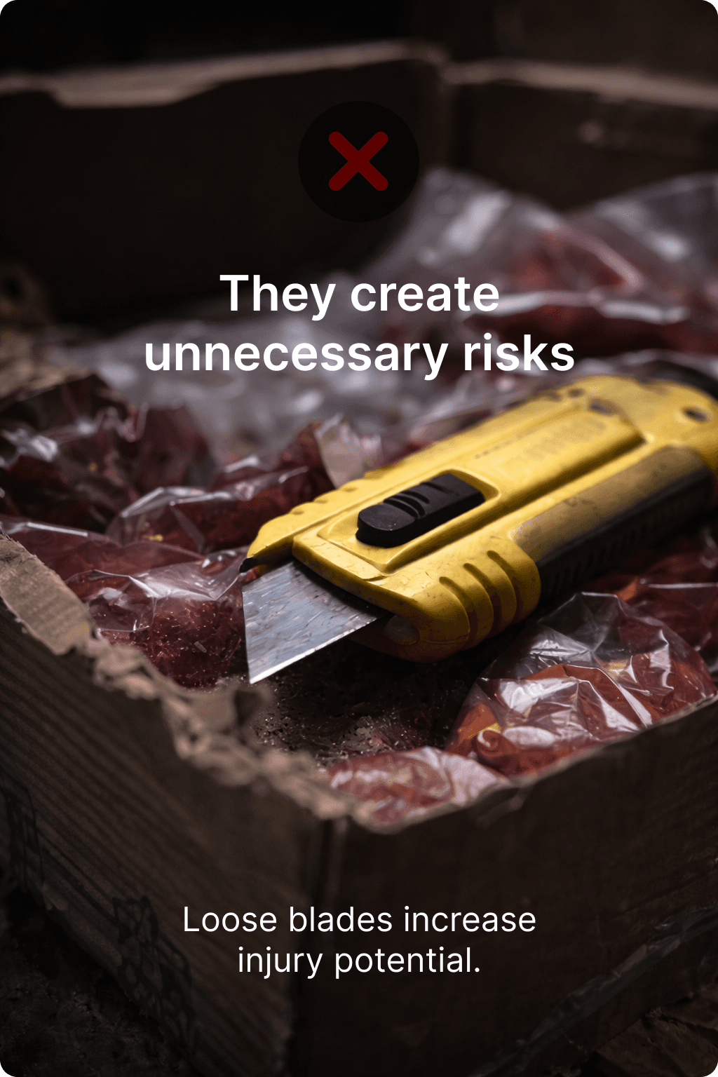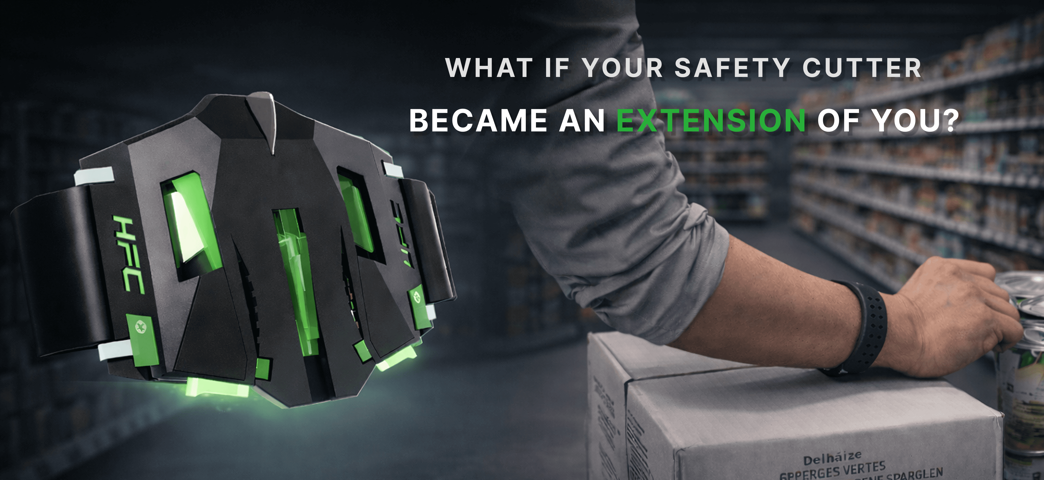 The innovation features a cutting element that easily opens cardboard boxes and cuts adhesives, without cutting the skin.